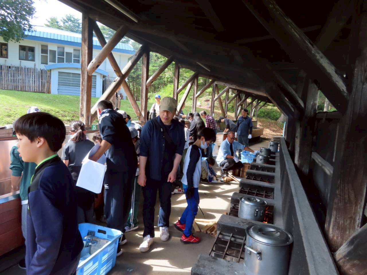 初日のお昼は、火を起こしから自分たちで行った「野外炊飯」で作ったカレーを食べ、片付け後の休憩時間には、急遽「モルック体験会」を行いました。
