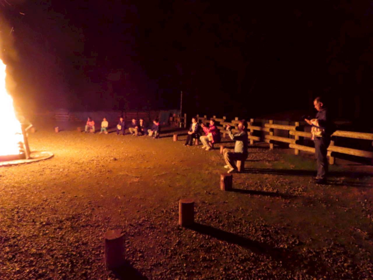 午後の活動では、自然の家のスタッフの方に指導いただきアイスブレイクで緊張をほぐした後、「プロジェクトアドベンチャー」で仲間との絆を強くしました。夜は、この行事では2回目となる「キャンプファイヤー」で楽しくも荘厳な時間を過ごしました。